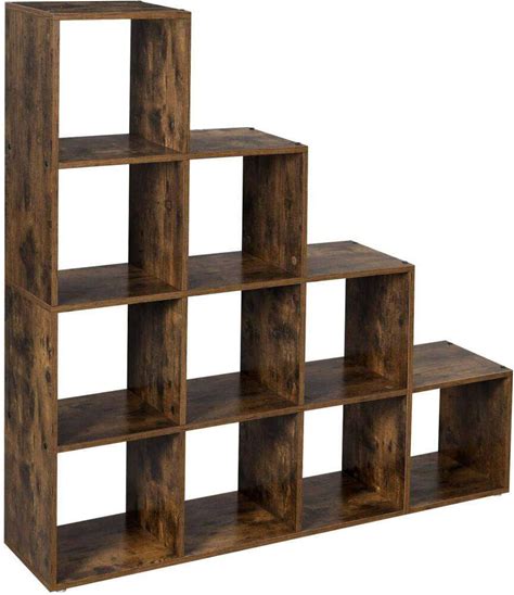 Vasagle Biblioteca Cu 10 Compartimente, Unitate De Depozitare Pentru Decoratiuni, Din Lemn, 29X129x129cm, Maro Rustic