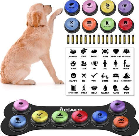 DCIAER Dog Buttons For Communication,Talking Buttons For Dogs,8 Recordable Sound Buttons + 24 Scene Patterns + 1 Dog Button Mat+ 16 AAA Batteries30