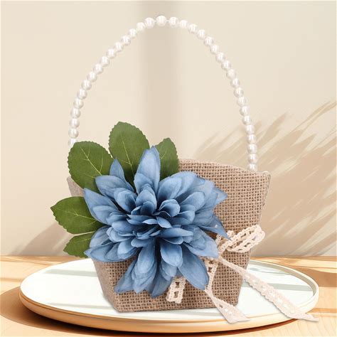 Rustic Flower Girl Basket, Vintage Burlap Flower Basket With Pearl Handle Jute Wedding Flower Girl Basket For Wedding Ceremony Bride