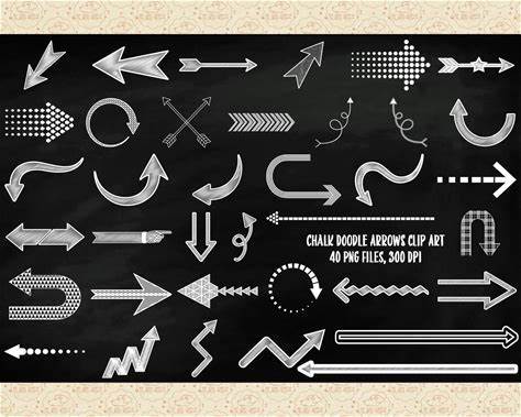 Chalk Arrows Clipart, Chalk Clip Art, Chalkboard Arrows, Patterned Arrows, Blackboard Overlays, Curved Arrows, Scribble Arrow, Commercial OK