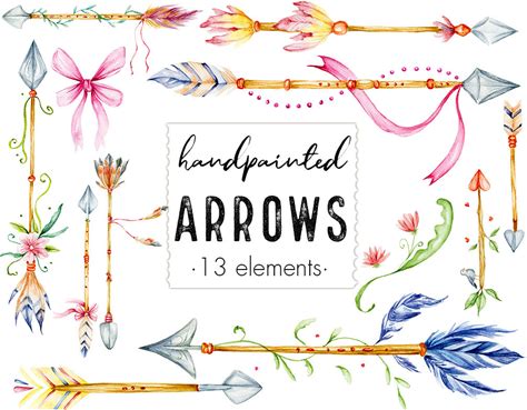 Watercolor Arrows Clipart, Hand Drawn Arrows Clip Art, Watercolor Design Elements, Feather Arrows, Boho Clipart, Tribal Arrows, Handpainted