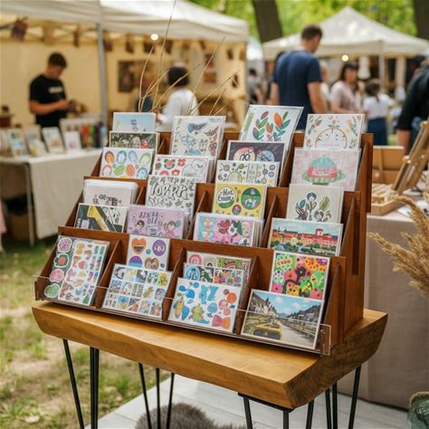 Wood Greeting Card Rack | Retail Display Stand | Postcard & Sticker Holder | 3 4 Tier Market Showcase | Craft Trade Show Display