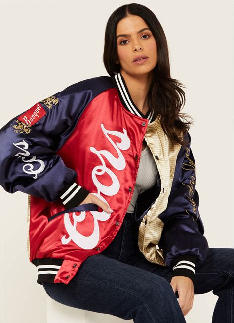 The Laundry Room Women's Faux Satin Coors Light Bomber Jacket