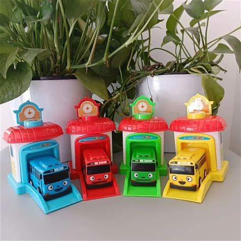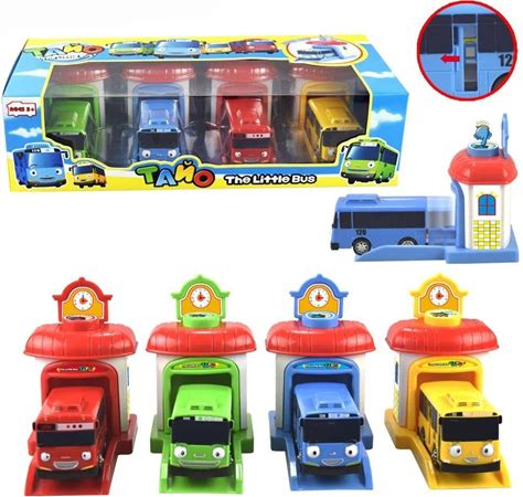 [Funny] 4Pcs/Set Scale Model Tayo The Little Bus Children Miniature Bus Baby Oyuncak Garage Tayo Bus
