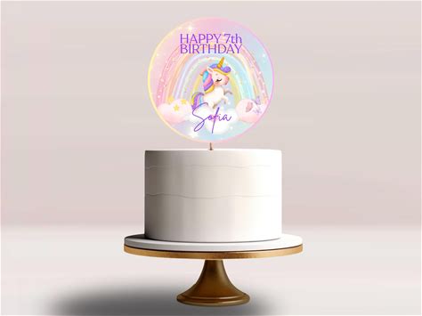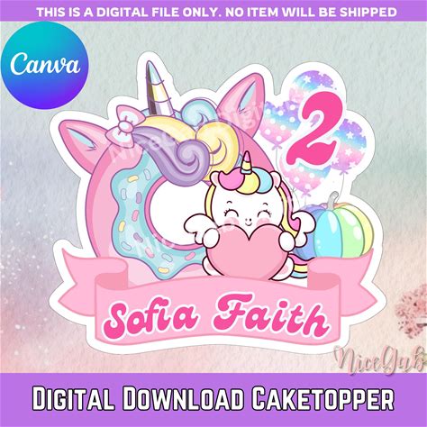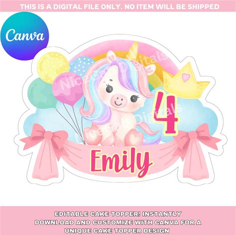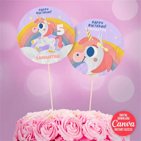 Magical Unicorn Party Cake Topper, Rainbow Unicorn Cake And Cupcake Topper (Editable Canva Template)