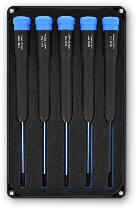 This precision Torx screwdriver set is invaluable to have on hand for working with electronics. The set includes sizes T5, T6, T7, T8, T9 and T10, making it ideal for working with small fasteners. The chrome vanadium steel blades have been heat-treated and tempered to give them toughness, strength and...