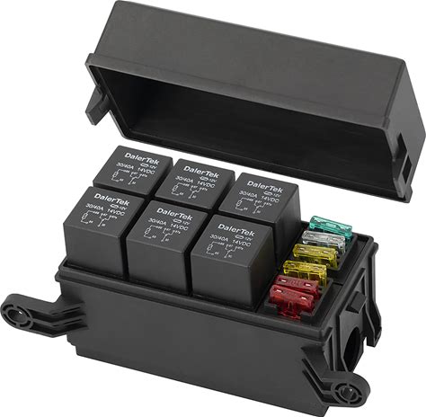 12V Blade Fuse Box With Relay Acc Control, 6 Circuit Fuse Holder Fuse Block W/Negative Bus For Autom