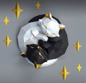 Star Couple Cat Paper Model Home Wall Decor Wedding Decoration Papercraft 3D Puzzles Creative