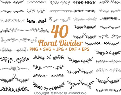 40 Floral Divider Svg, Floral Divider Svgs, Decorative Borders, Text Divider Svg, Floral Frame Svg, Leaf Divider Svg, Decorative Borders Svg