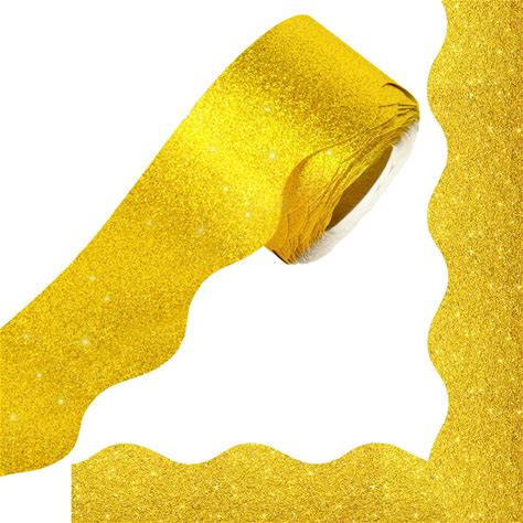 Gold Glitter Bulletin Board Borders, 65.6ft Shine Gold Scalloped Borders Trim Christmas Glitter Bulletin Board Border Decorations Self-Adhesive