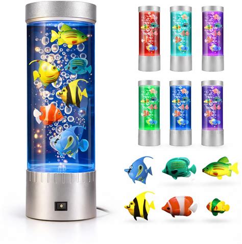 Bubble Fish Lamp With 6 Floating Fake Fish - LED Aquarium Night Light With Bubbles - Cylindrical Transparent Tank, Perfect For Kids Rooms, Offices,