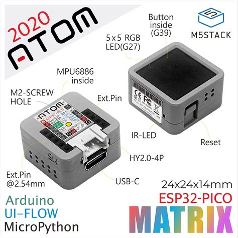 M5stack Official ATOM Matrix ESP32 Development Kit Built-In MPU6886 ESP32 PICO-Based Internet Of