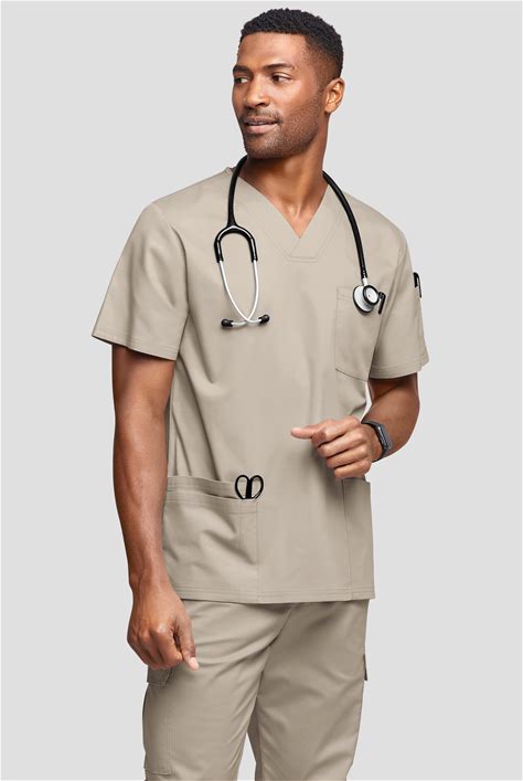 UA Butter-Soft STRETCH Men's 6-Pocket V-Neck Scrub Top - Plus Size 2X - Warm Sand
