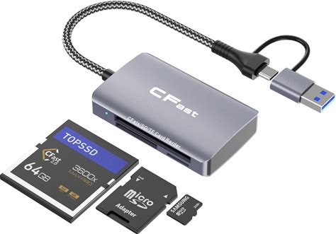 Cfast Card Reader, 3 in 2 SD/TF Cfast 2.0 Memory Card Reader, USB 3.2 Cable Compatible With Windows/Mac/Linux/Android (3 in 2)